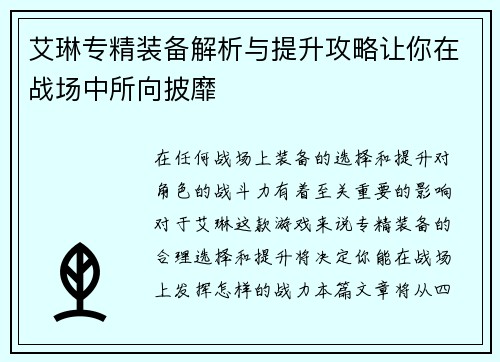 文章摘要:本文围绕以水元素冰环宏为核心的战斗技巧与配装方案展开探讨,旨在帮助玩家通过高效的战斗操作提升游戏体验。水元素冰环宏以其强大的群体控制与输出能力成为许多玩家选择的核心技能,然而,要最大化其效能,合理的战斗技巧与配装方案显得尤为重要。文章从四个方面进行分析:一是水元素冰环宏的基本机制与应用,二...